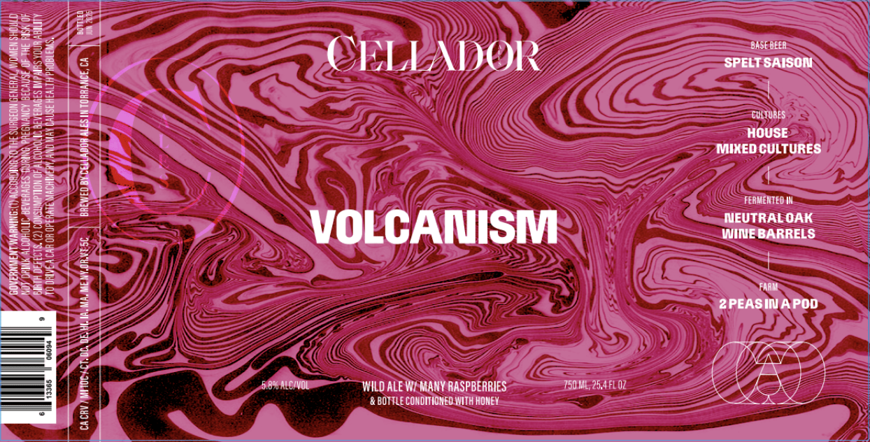 We fermented this beer in two stages on a total of four pounds of raspberries per gallon sourced from 2 Peas In A Pod near San Luis Obispo. Some beers use fruit for nuance or aroma. Volcanism fully embraces it. The result is an unapologetically fruit-forward beer with vibrant raspberry character from nose to finish.