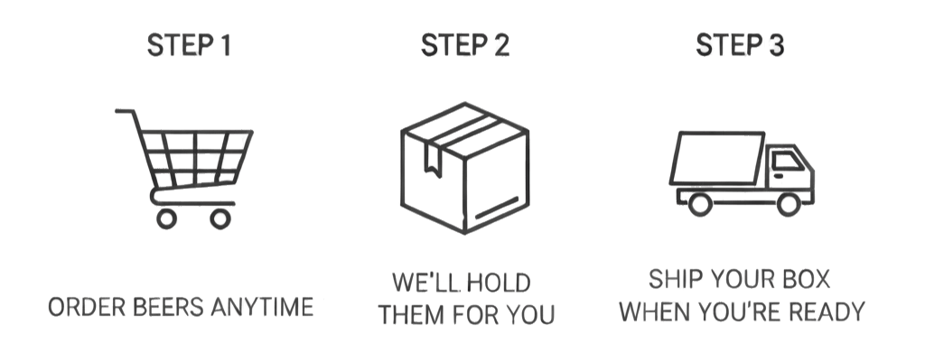Step 1: Order Beers Anytime Step 2: We'll hold them for you Step 3: Ship your box when you're ready